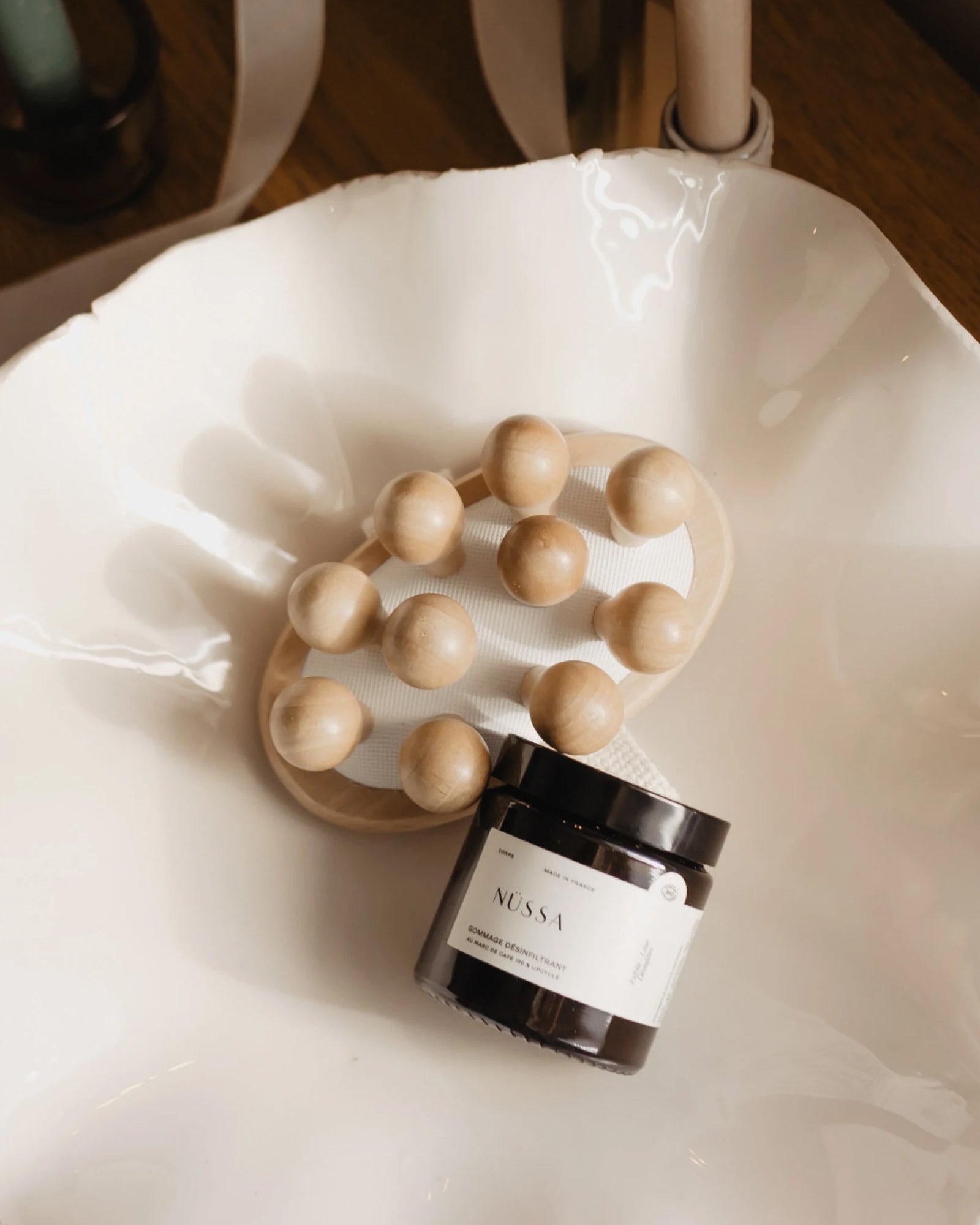 The dream body duo combines the disinfiltrating body scrub, ideal for gentle exfoliation and tissue de-clogging, with a precious beechwood brush that reproduces palpate-roll and lymphatic drainage gestures.